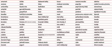 Seznam vyšetřovaných složek potravin